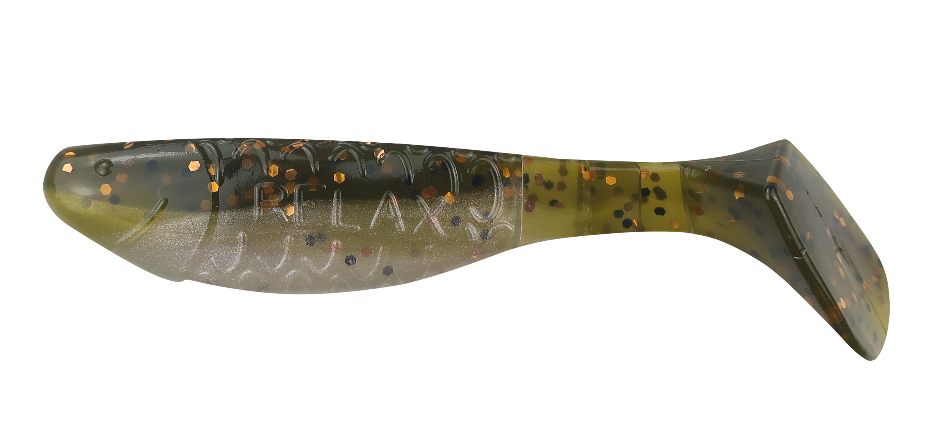 GREEN SHAD-ORANGE, BLACK GLITTER