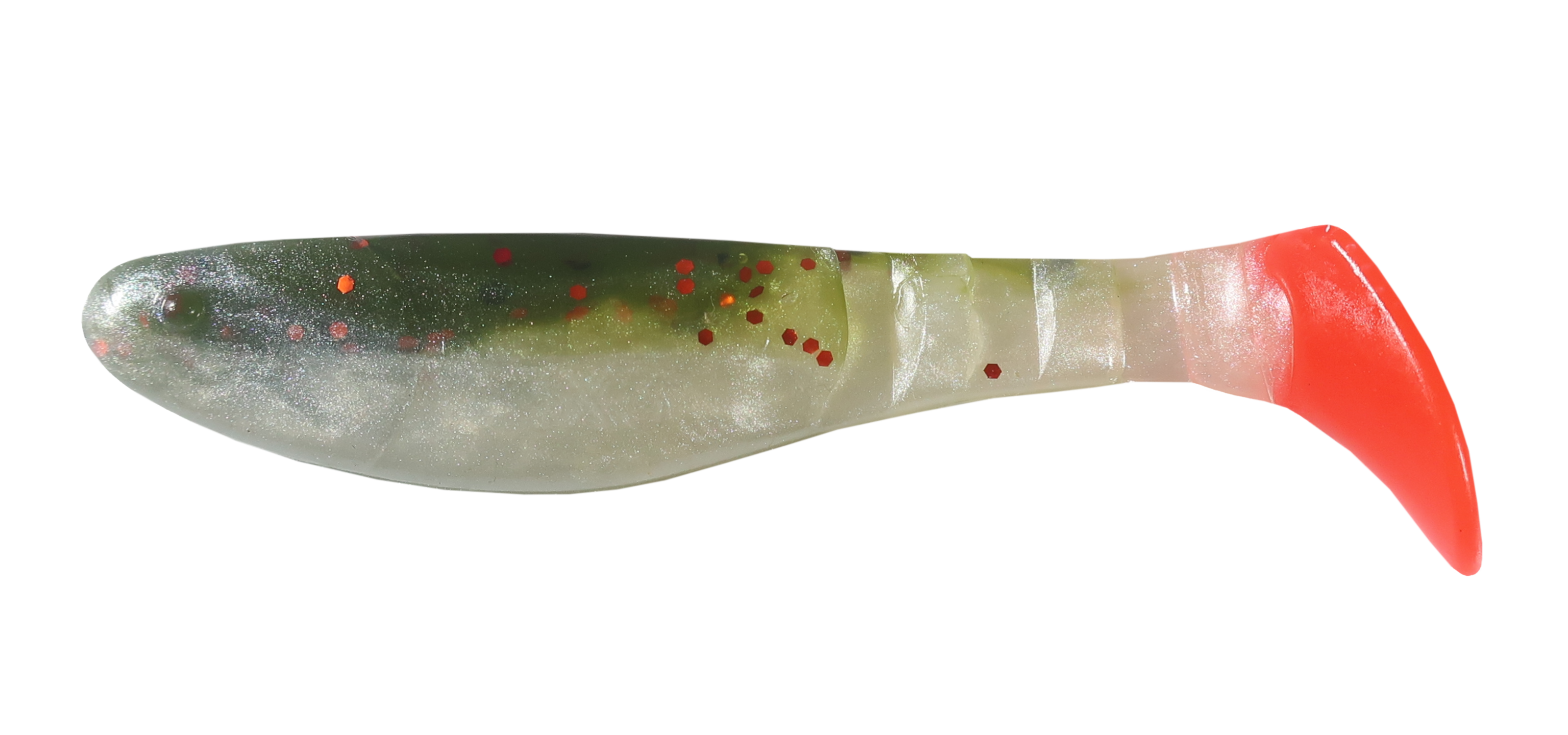 GREEN SHAD-ORANGE, RED GLITTER